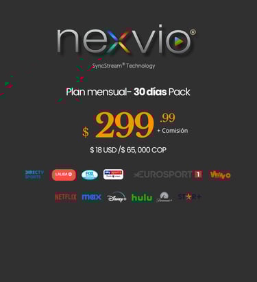 Eleva tu experiencia televisiva, porque más que mirar es disfrutar con precisión y estilo. nexvio SynStream Technology fué creada para quienes valoran la calidad de imagen y la estabilidad, además de la variedad de contenido.